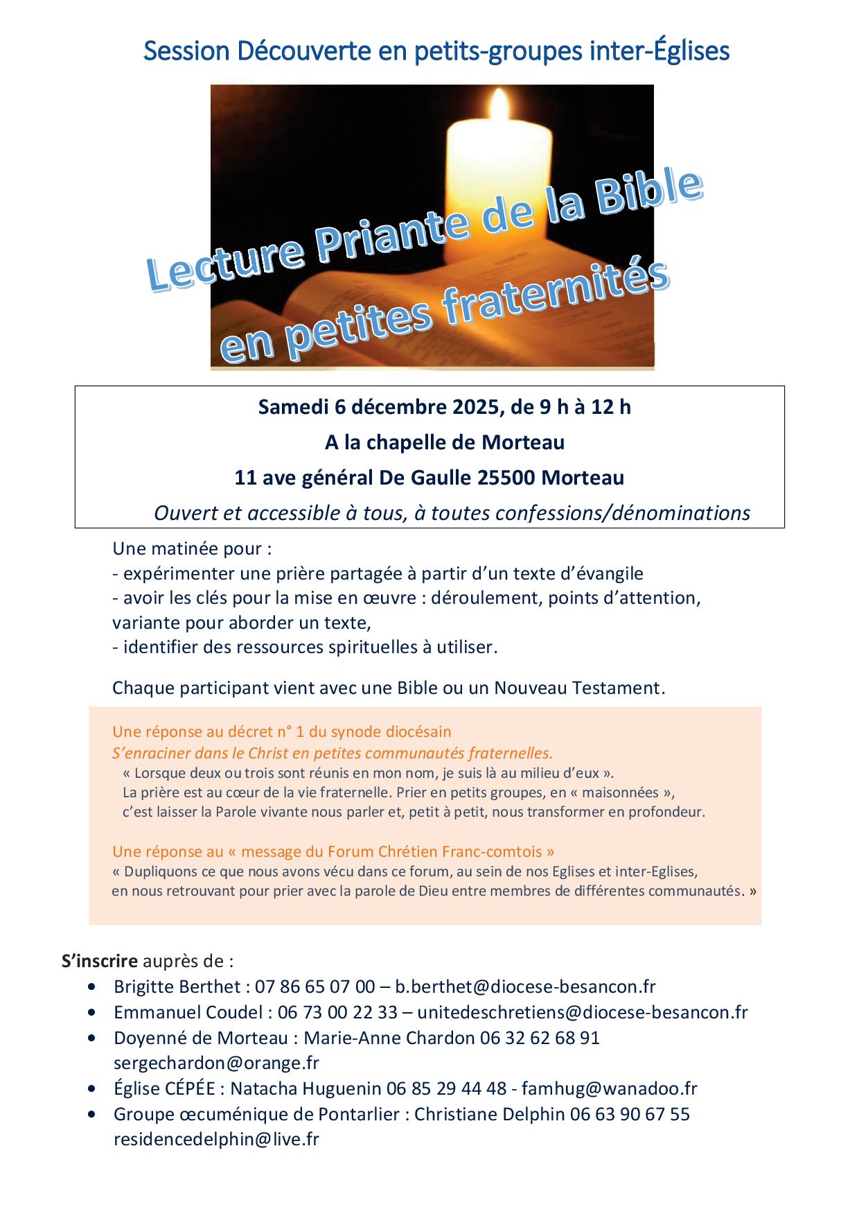 Lecture priante de la Bible en petites fraternités à Morteau — Diocèse de Besançon