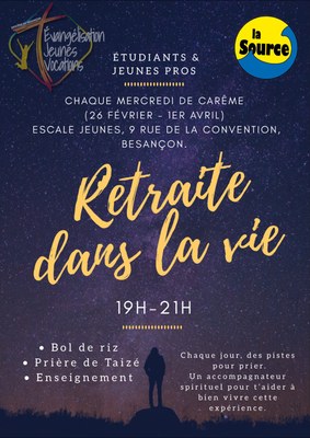 Soirée organisée par le département des vocations, à travers la voix de frère Nicolas Morin, Franciscain, avec l’aide de  l’aumônerie des étudiants (La Source) et l’Escale. Les topos sont disponibles en vidéo sur cette page chaque semaine.
