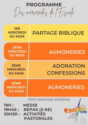 Que vous soyez lycéens, étudiants, jeunes pros, venez vivre de belles soirées chaque mercredi à l'escale. Le programme ci après...