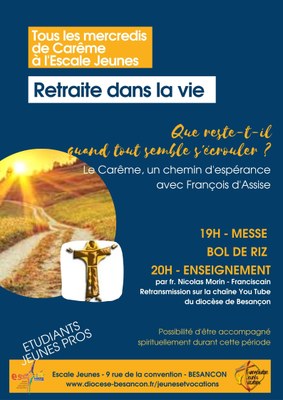 - 20h : Enseignement par le frère Nicolas MORIN - Franciscain (retransmission sur la chaîne YouTube du diocèse