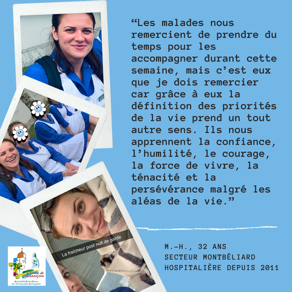 Retrouvez ici un florilège de témoignages d'Hospitalières et d'Hospitaliers de Notre-Dame de Lourdes. Ils sont l'occasion de réfléchir et de se motiver à partir !