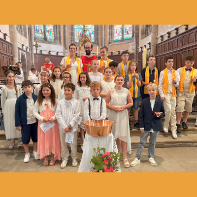 Grande joie de voir toute cette belle assemblée réunie en l'église Saint-Georges de Vesoul pour accueillir et accompagner le baptême de Capucine, la première des communion pour Sacha et Maël, la première rencontre pour une trentaine de jeunes qui se lancent dans le parcours vers le sacrement de confirmation ; L'abbé Jean-Marie Larue qui présidait cette eucharistie a rappelé qu'au cours de cette célébration nous avions les 3 sacrements de l'initiation chrétienne (baptême, première communion, confirmation).