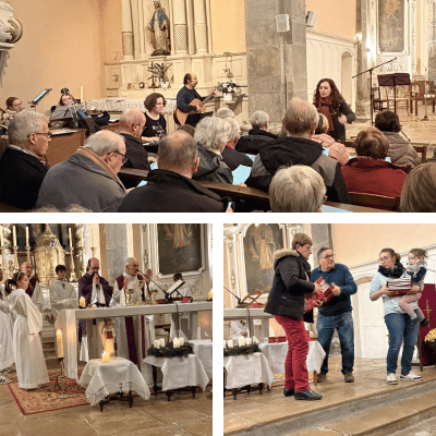 Jésus’time, espérance et générosité ont marqué une mémorable entrée dans l’Avent pour la paroisse Sainte Anne, dimanche 1er décembre. Dimanche dernier, la salle communale de Vellefaux a accueilli un moment fort de partage et de foi, à l’occasion de notre rendez-vous mensuel Tous ensemble avec Jésus-Christ. Une vingtaine d’enfants, accompagnés de quelques parents, se sont rassemblés pour débuter le temps de l’Avent dans la joie et la convivialité. Après un temps de louange, petits et grands se sont prêtés à une version revisitée du jeu du chapeau, imaginée par les catéchistes. Ce Times'up chrétien, rebaptisé ‘’Jésus’time’’ proposait de faire deviner des mots et des personnages liés à la foi et à l’Évangile comme messe, assomption, ou encore apôtre, par associations d’idées, un seul mot, puis un mime. "À notre table, on a beaucoup ri ! L’imagination des enfants pour faire deviner est incroyable" témoigne Francine, catéchiste. Pour les parents, ce jeu a également été l’occasion de se plonger dans des concepts parfois complexes, avec une bonne dose de créativité et d’imagination : "C’est une manière joyeuse d’investir notre ressemblance au Dieu Créateur, inventif, et de lui rendre grâce." Surtout, ne pas désespérer ! Le temps de jeu a laissé place à la célébration dominicale, marquée par la générosité des paroissiens : à l’entrée de l’église, une montagne de jouets avait été rassemblée pour les enfants les plus démunis. « Je vais devoir demander une camionnette pour emmener tout ça aux restos du cœur ! » s’exclame la responsable de l’équipe de coordination pastorale. La messe, présidée par le père Franck Ruffiot, a rassemblé une assemblée vivante et fervente, avec pas moins de huit servants d’autel et un acolyte en service. Dans son homélie, le père Franck nous a invités à entrer dans l’Avent avec confiance et espérance, en évoquant l’exemple de la cathédrale Notre-Dame de Paris restaurée. À travers le jubé mis au jour par les fouilles archéologiques, il a rappelé que nos propres vies, même marquées par des blessures ou des péchés, peuvent être restaurées par la divine rédemption. Et nous a invité à ne surtout pas désespérer, ni devant nos propres péchés, ni de nos frères e sœurs humains, ni de la miséricorde de Dieu. (AC)