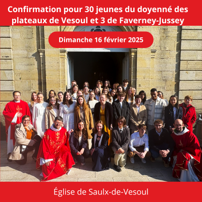 Ce dimanche 16 février 2025, sous un soleil radieux, 33 jeunes des doyennés des plateaux de Vesoul et de Faverney-Jussey se sont réunis pour recevoir le sacrement de confirmation. La messe, présidée par le Vicaire Général, Christophe Bazin, accompagné de l’abbé Franck RUFFIOT, doyen, l’abbé Jean-Marie LARUE, André BRUNNER diacre permanent sur la paroisse du Pays Riolais et de Julien DUSSAUCY acolyte. L’animation musicale était assurée par le groupe EFYS, apportant à la liturgie dynamisme et recueillement. (Sarah Cattin - photos Léonie Allard)