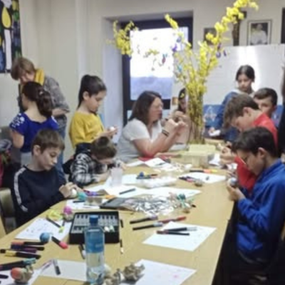 Les enfants du caté et leurs catéchistes ont décoré des œufs tout en échangeant sur la richesse du symbolisme de l’œuf... et les origines de la tradition de l’œuf de Pâques. (les catéchistes)