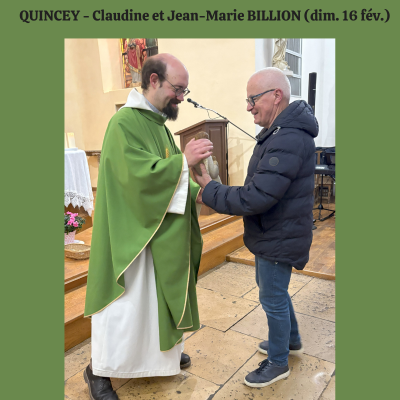 C'est en l'église de Navenne que l'abbé Jean-Marie a remis la statue du saint Ange à Jean-Marie BILLION. Claudine et Jean-Marie accueille le saint Ange et proposent un temps de prière en l'église de Quincey le jeudi 13 février à 18h