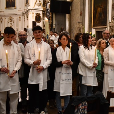 34 jeunes se préparent à recevoir le sacrement de confirmation. 31 d'entre eux habitent dans les 7 paroisses du doyenné des plateaux de Vesoul (Notre-Dame de la Motte = 11 ; Val de l'Ognon et de la Linotte = 3 ; Pays Riolais = 4 ; Noroy-le-Bourg = 4 ; Scey-Val-de-Saône = 5 ; Saint-Martin de Saulx-Colombier = 1 ; Sainte-Anne Mailley-Vellefaux = 3) et 3 viennent du doyenné de Faverney-Jussey. Ils ont vécu leur dernier temps fort de préparation ce dimanche 26 janvier, tout d'abord en participant activement à la messe dominicale en l'église Saint-Georges de Vesoul ; Messe présidée par l'abbé Franck Ruffiot et concélébrée par le Vicaire Général Christophe Bazin et l'abbé Georges Martin. Ce dernier temps fort était consacré au sacrement de réconciliation ; ce sacrement est le signe de l'Amour de Dieu. La célébration de la confirmation aura lieu en l'église Saint-Martin de Saulx-de-Vesoul, le dimanche 16 février à 10h30. Portons-les dans nos prières et venez nombreux pour les accompagner.