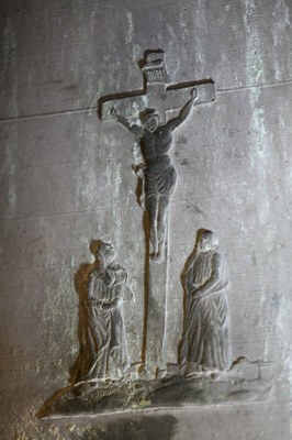 Cette cloche a été refondue sous le nom de Jeanne en l’honneur de Saint Jean, patron de la cathédrale de Besançon par ordre de son éminence le cardinal Mathieu Archevêque de Besançon, le 7 avril 1860 par François Dutot et Compagnie à Paris