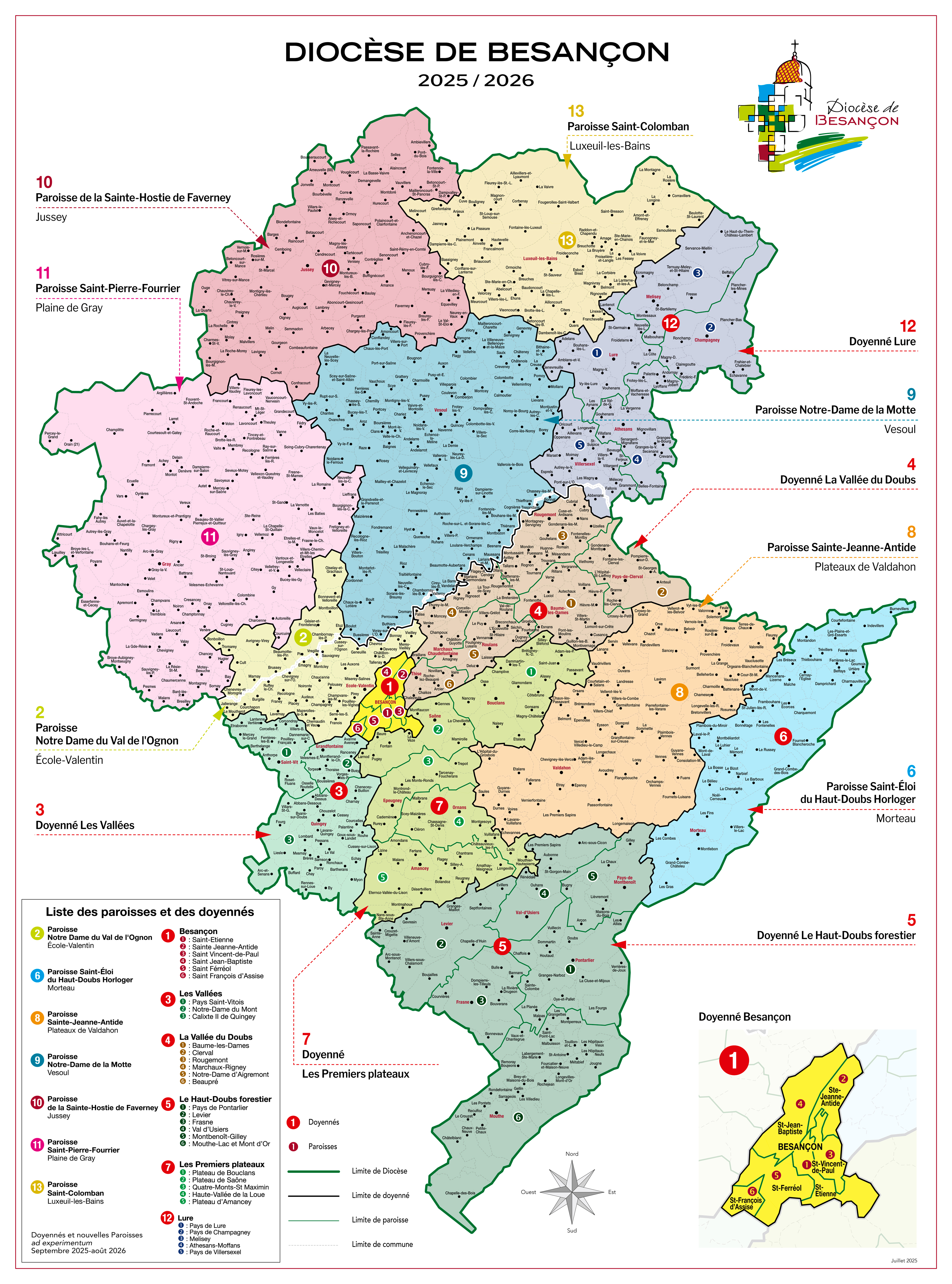 Carte du diocèse (ad experimentum 25-26) — Diocèse de Besançon