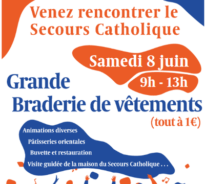 Grande Braderie du secours catholique le samedi 8 juin