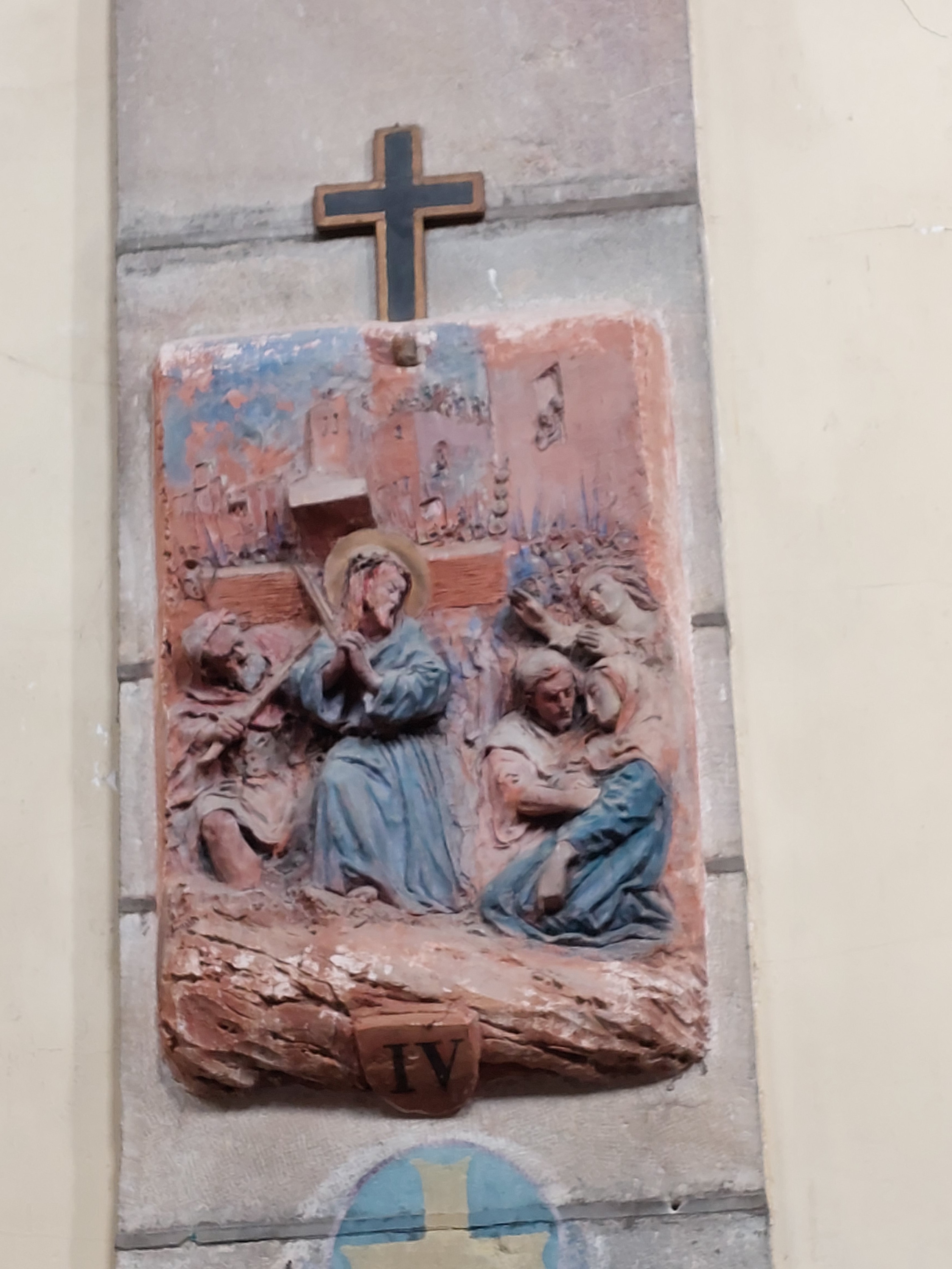 Une autre œuvre, aux couleurs intenses, représente sainte Anne sous les traits d'une jeune châtelaine, née Seguin de Jallerange. Une récente étude architecturale a révélé que les sculptures visibles sur la chaire ont été réalisées avec la même terre cuite que le chemin de croix.