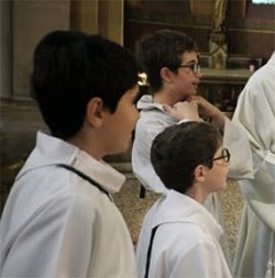 Le service de l’autel s’offre à tous les enfants à partir de l’âge de raison désireux de servir le Seigneur à l’autel.