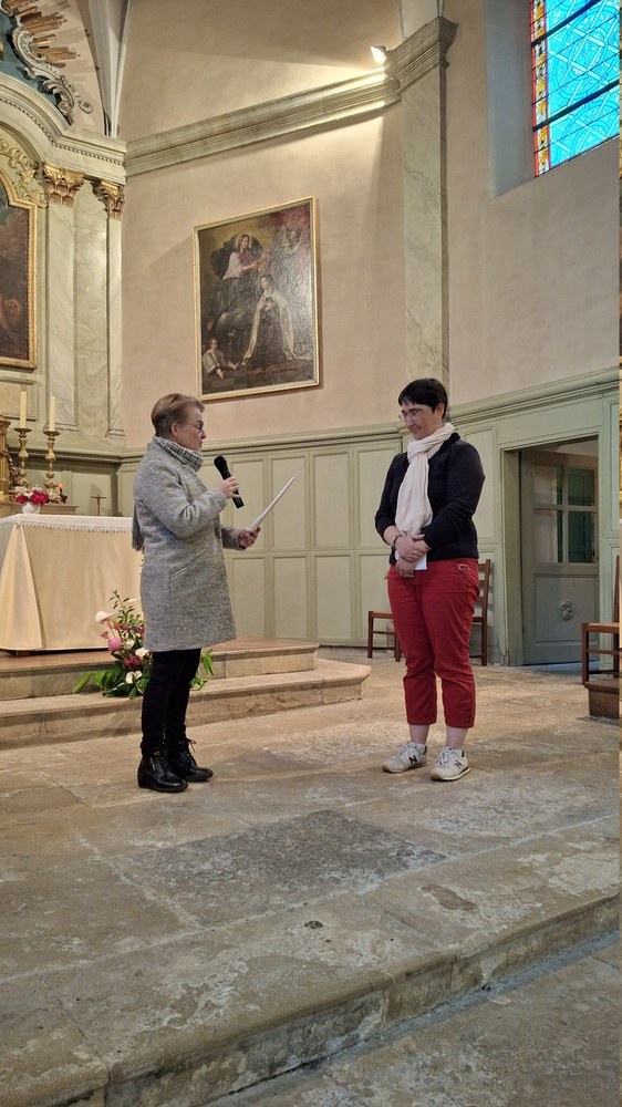 Ce vendredi soir 31 mai 2024, Christophe Bazin, vicaire général, accompagné de Jean-Paul Guyot et Laurent Bretillot, curés du doyenné, et de Hélène Tarbouriech, déléguée générale, ont envoyé Sabine Lefevre en mission comme Déléguée Pastorale de doyenné. Tous les ECP du doyenné ainsi que sa famille et ses amis étaient présent pour l'accompagner.