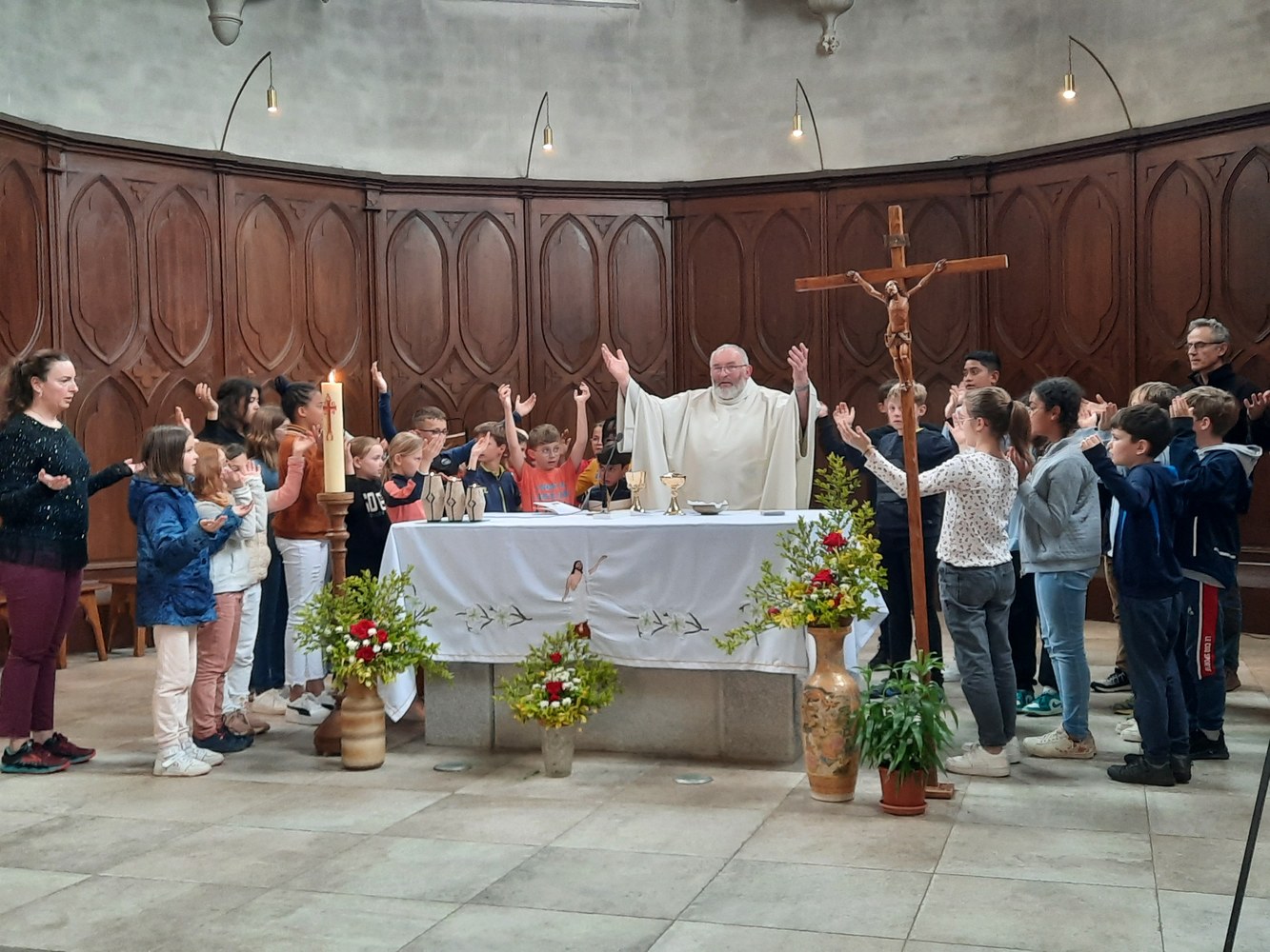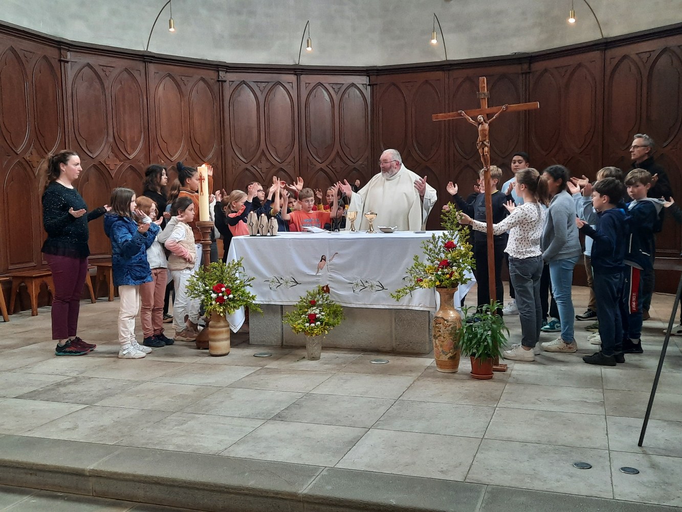 Temps fort pour les enfants qui se préparent à communier pour la première fois, samedi 4 mai à la Grâce Dieu entouré de leur équipe de catéchèse du doyenné.