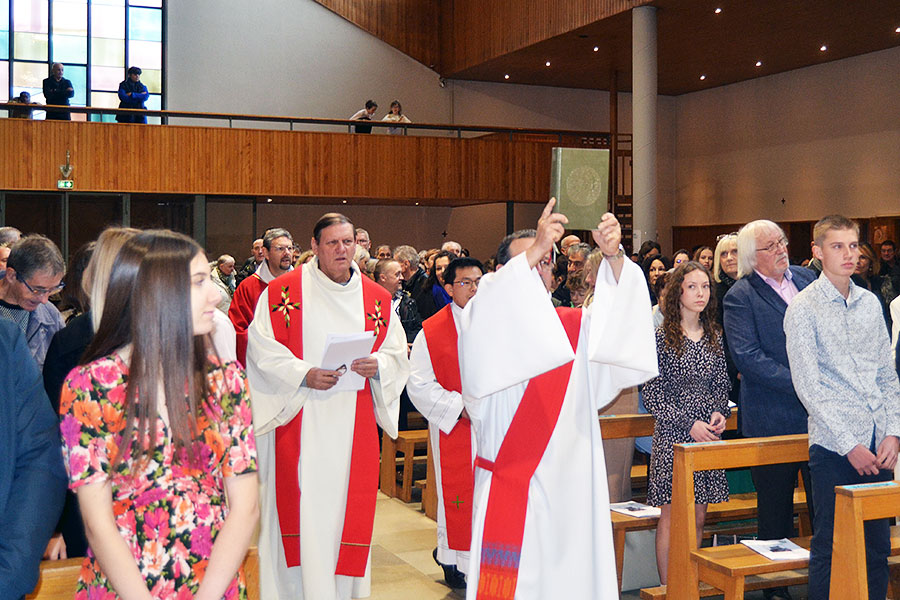à l'église Saint-Pierre de Pontarlier - Confirmants : abbé Christophe Bazin, vicaire général, et abbé Franck Ruffiot, ancien curé dans le doyenné et vicaire épiscopal