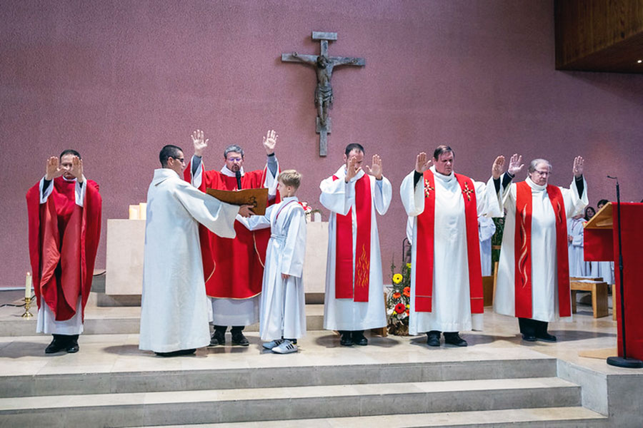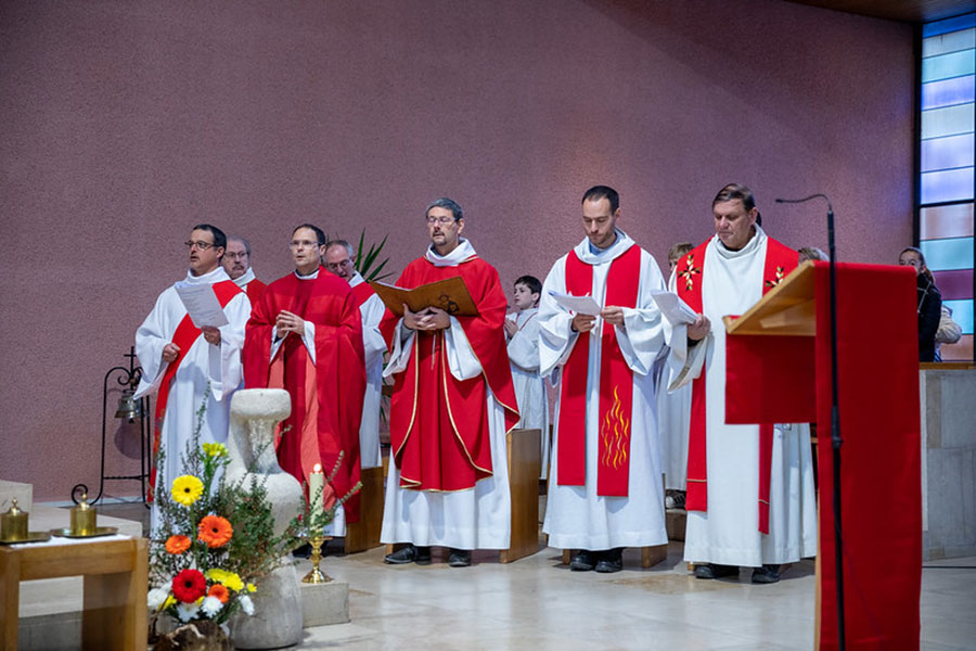 à l'église Saint-Pierre de Pontarlier - Confirmants : abbé Christophe Bazin, vicaire général, et abbé Benoît Decreuse, doyen du Haut-Doubs forestier