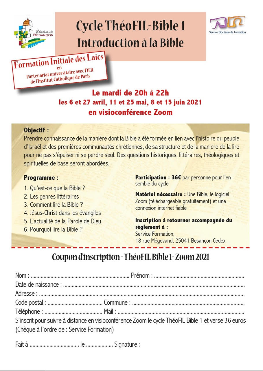 Un cycle ThéoFIL Bible 1 va être ouvert au printemps prochain sur une proposition tout à distance en visioconférence.