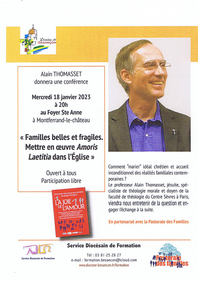 Le professeur Alain Thomasset, jésuite, spécialiste de théologie morale et doyen de la faculté de théologie du Centre Sèvres à Paris, viendra nous entretenir de a question et engager l'échange ensuite.