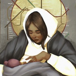 Publiée sur la page Facebook de Tubik Agency, une société de conception graphique ukrainienne, on voit à gauche une photographie touchante d’une Ukrainienne allaitant son bébé dans le métro de Kiev et, à droite, une icône moderne de la Vierge à l’Enfant. La mère est assise devant un plan du métro ukrainien, qui forme ensuite le halo autour de sa tête. Une image qui accompagne les mots prononcés par François lors de l’acte de consécration : « Mère de Dieu et notre Mère […] Accueille cet acte que nous accomplissons avec confiance et amour, fais que cesse la guerre, assure au monde la paix. Le “oui” qui a jailli de ton Cœur a ouvert les portes de l’histoire au Prince de la paix ; nous espérons que la paix viendra encore par ton Cœur. »