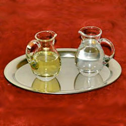 Utilisées par le prêtre lors de la messe, les burettes sont destinées à contenir l'eau et le vin pour la célébration eucharistique.