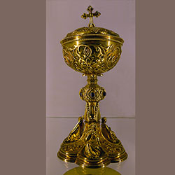 Vase sacré destiné à recevoir les hosties après la consécration, le ciboire est fermé par un couvercle le plus souvent surmonté d’une croix.