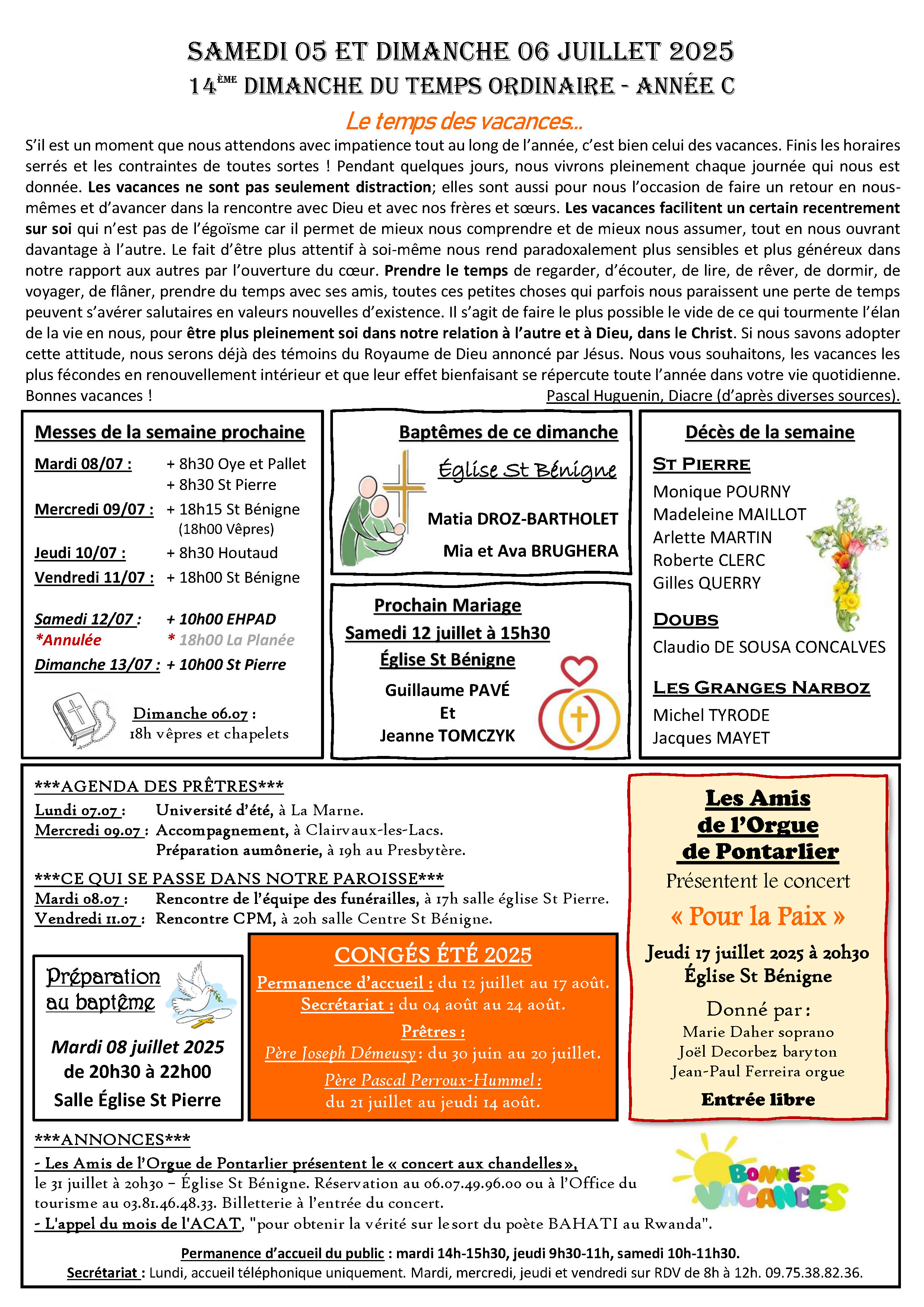 Annonces de la semaine du 06 juillet 2025