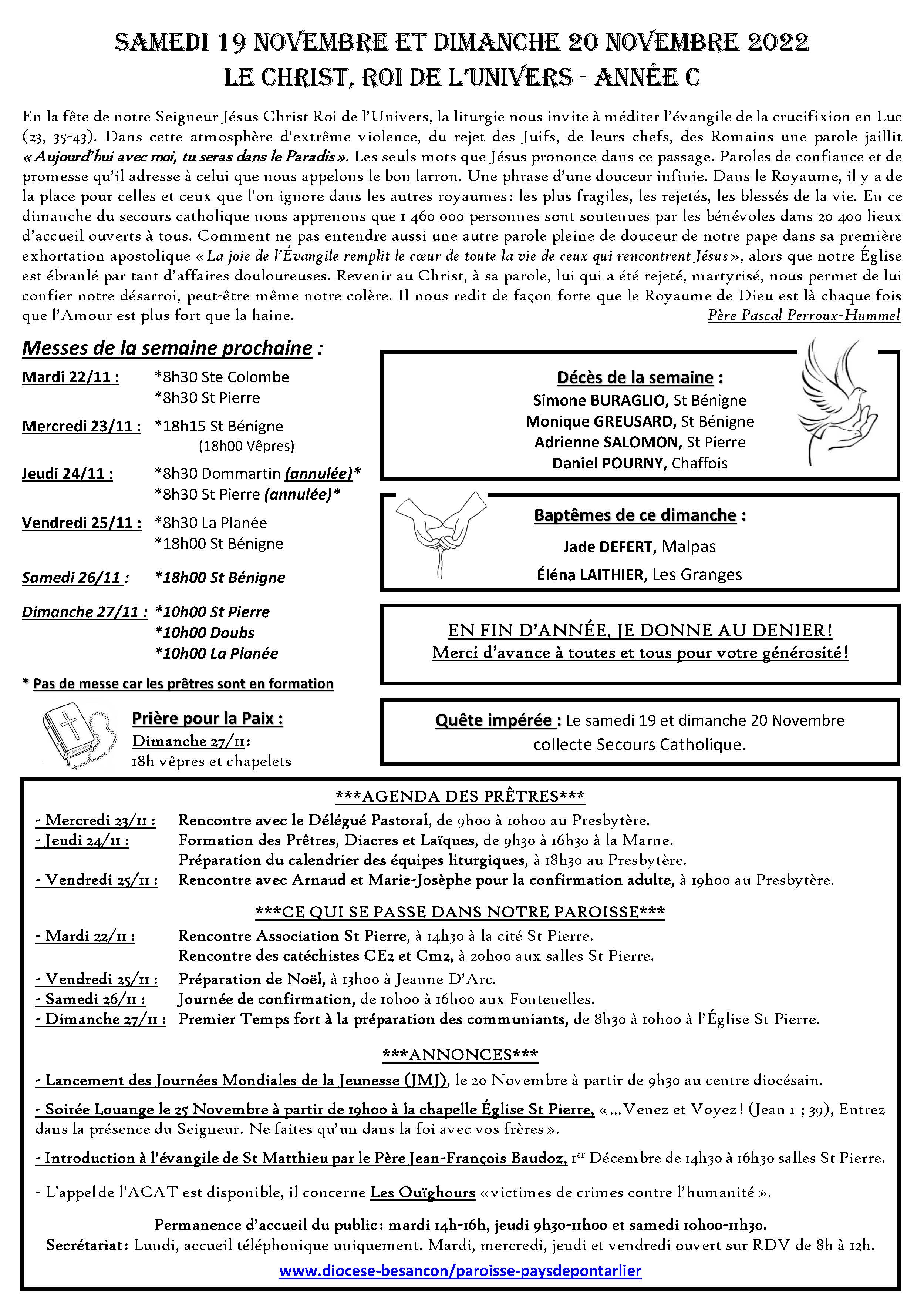 Annonces de la semaine du 20 novembre 2022