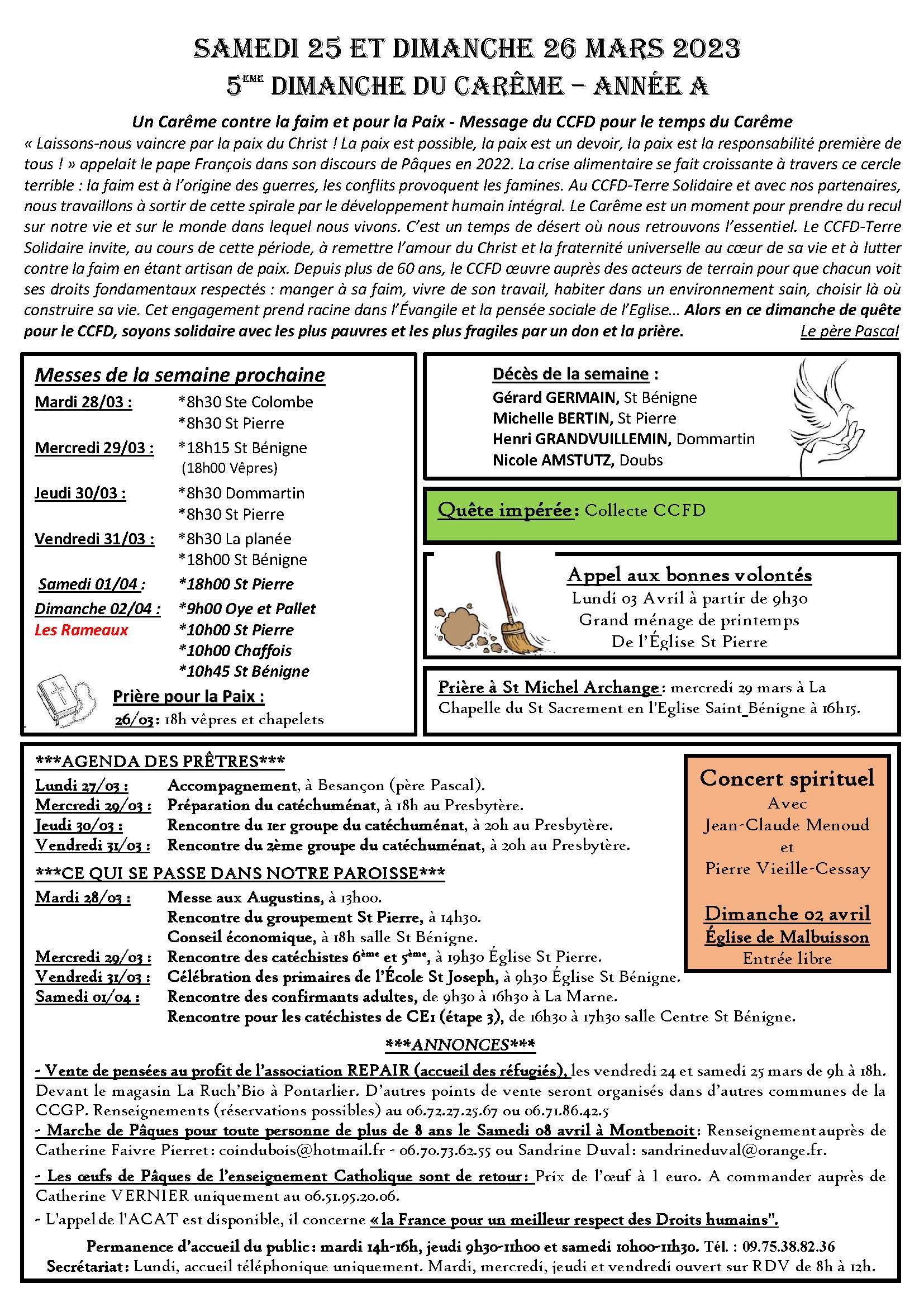 Annonces de la semaine du 26 mars 2023