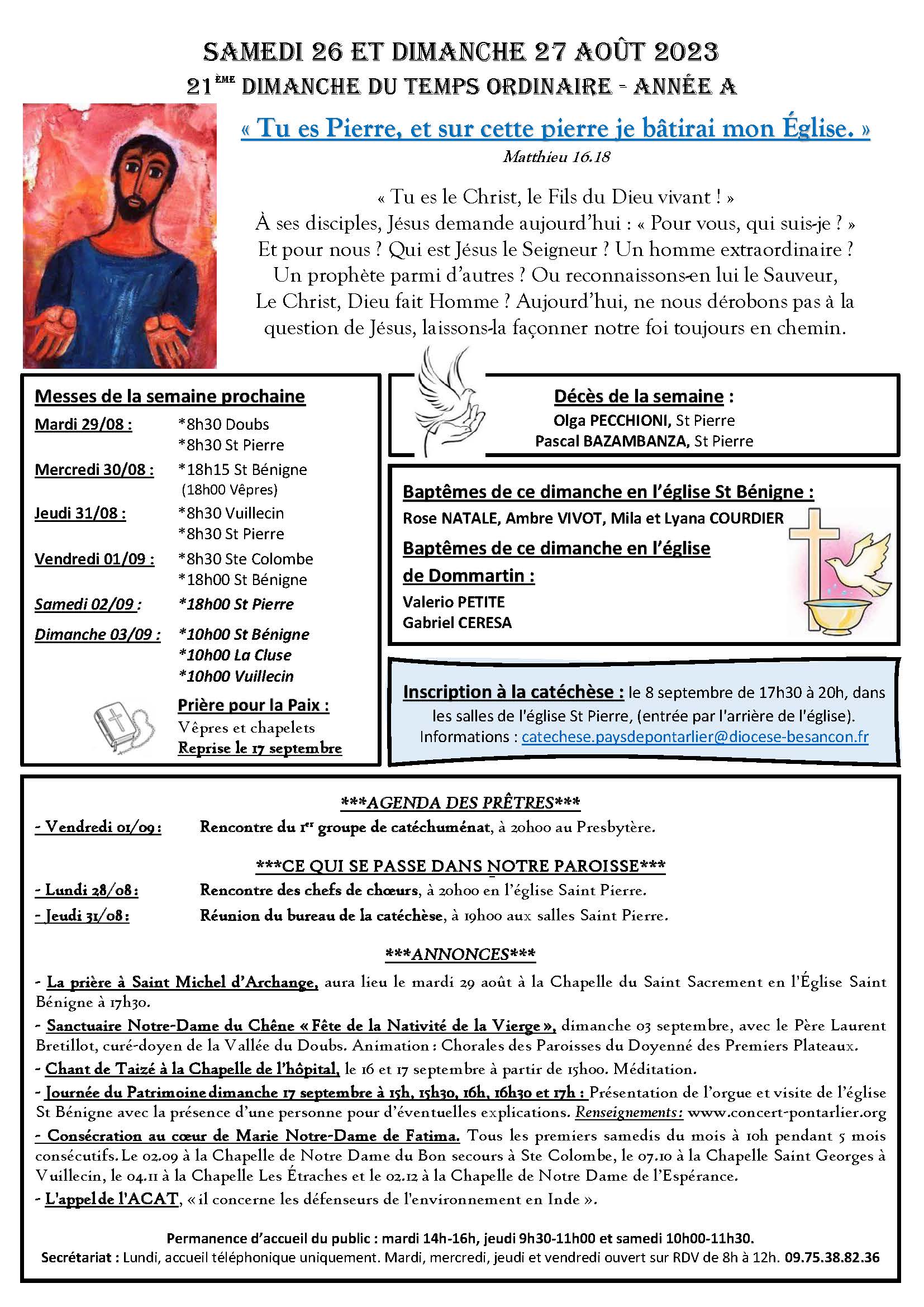 Annonces de la semaine du 27 août 2023
