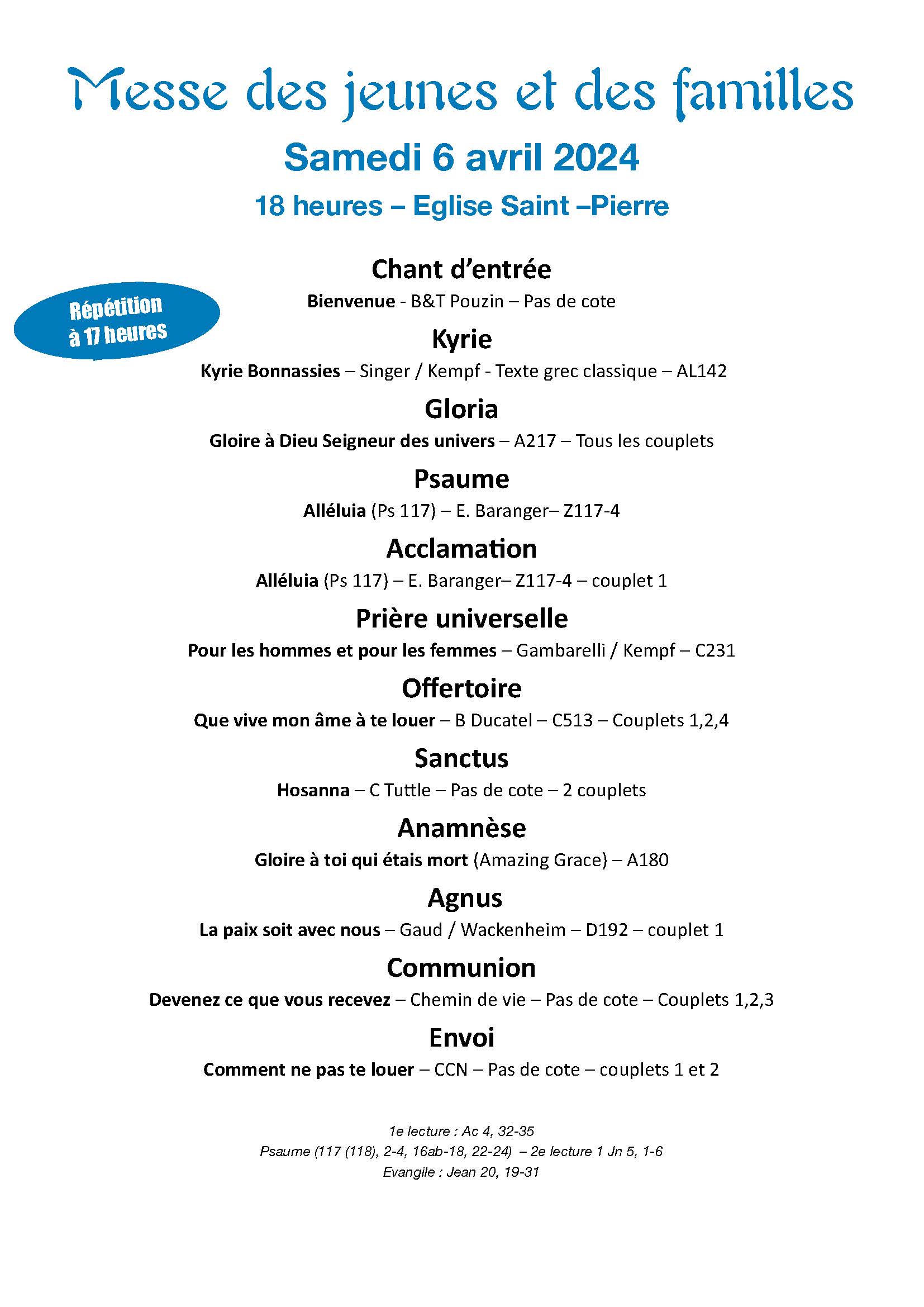 Messe des Jeunes et des Familles - 06-04-2024 — Paroisse du Pays de Pontarlier