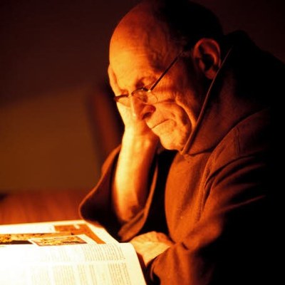 Lecture dans le scriptorium de l'Abbaye Notre-Dame de Citeaux. Côte d'Or (21), Bourgogne, France. Date de création : 20/04/2015