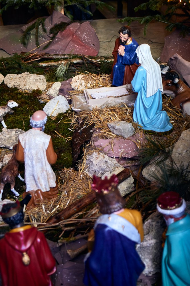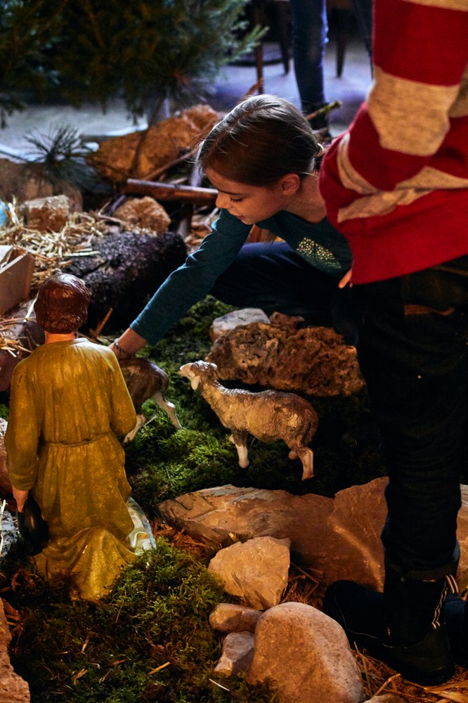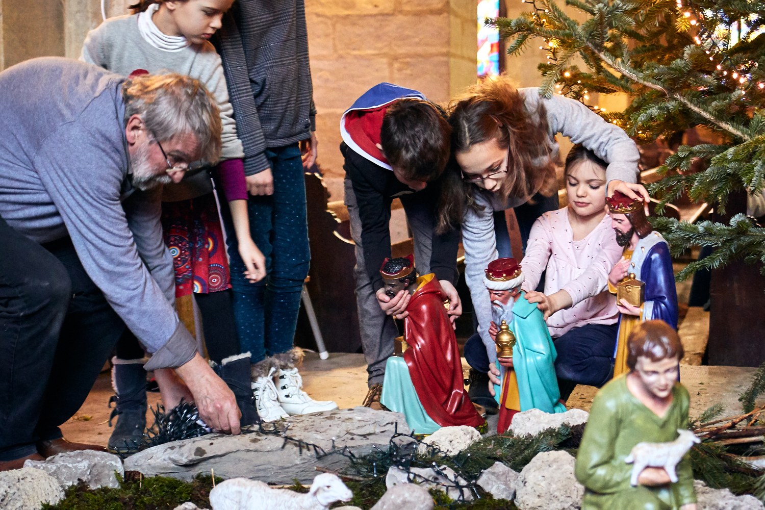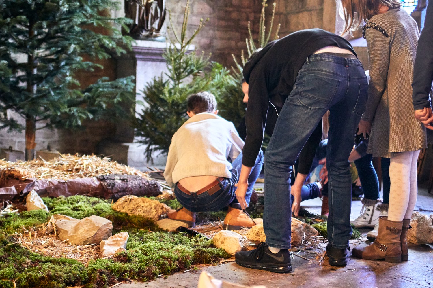 Mise en place de la crèche par les servants d'Autel à l'église Saint Bénigne