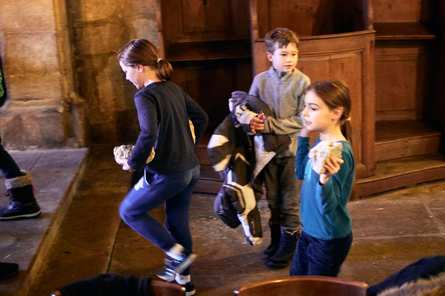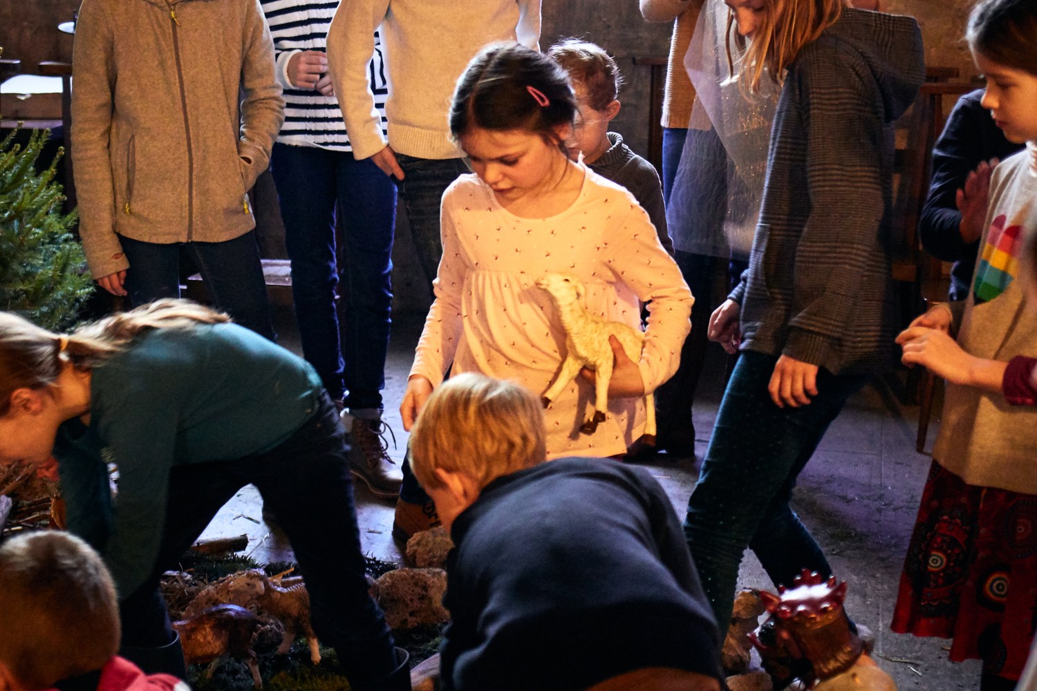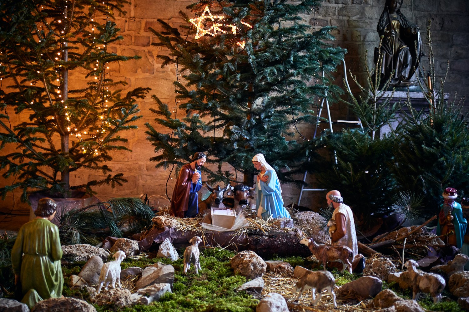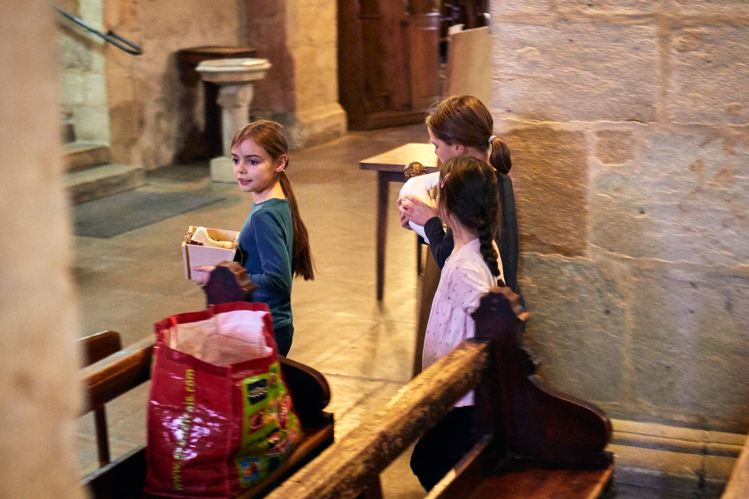 Mise en place de la crèche par les servants d'Autel à l'église Saint Bénigne