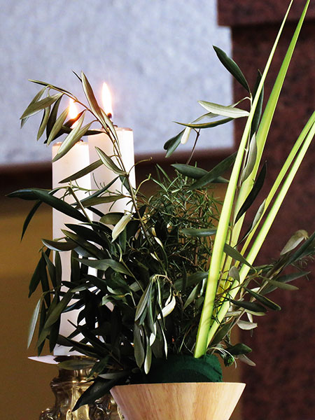 Le dimanche des Rameaux est un dimanche festif. Ce jour-là, les fidèles apportent des rameaux et le prêtre les bénit. Ces feuillages toujours vert, rappellent que la vie ne finit pas.