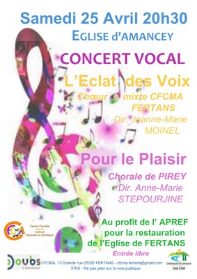 - Samedi 25 avril, Concert vocal "L'Eclat des Voix" à Amancey