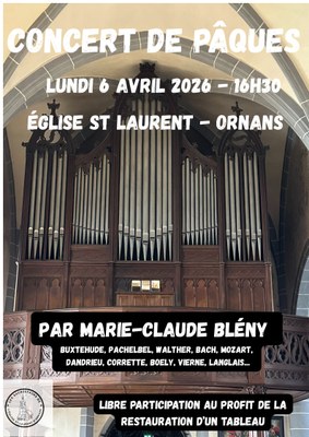 - Lundi de Pâques, 6 avril, concert d'orgues à l'église St Laurent