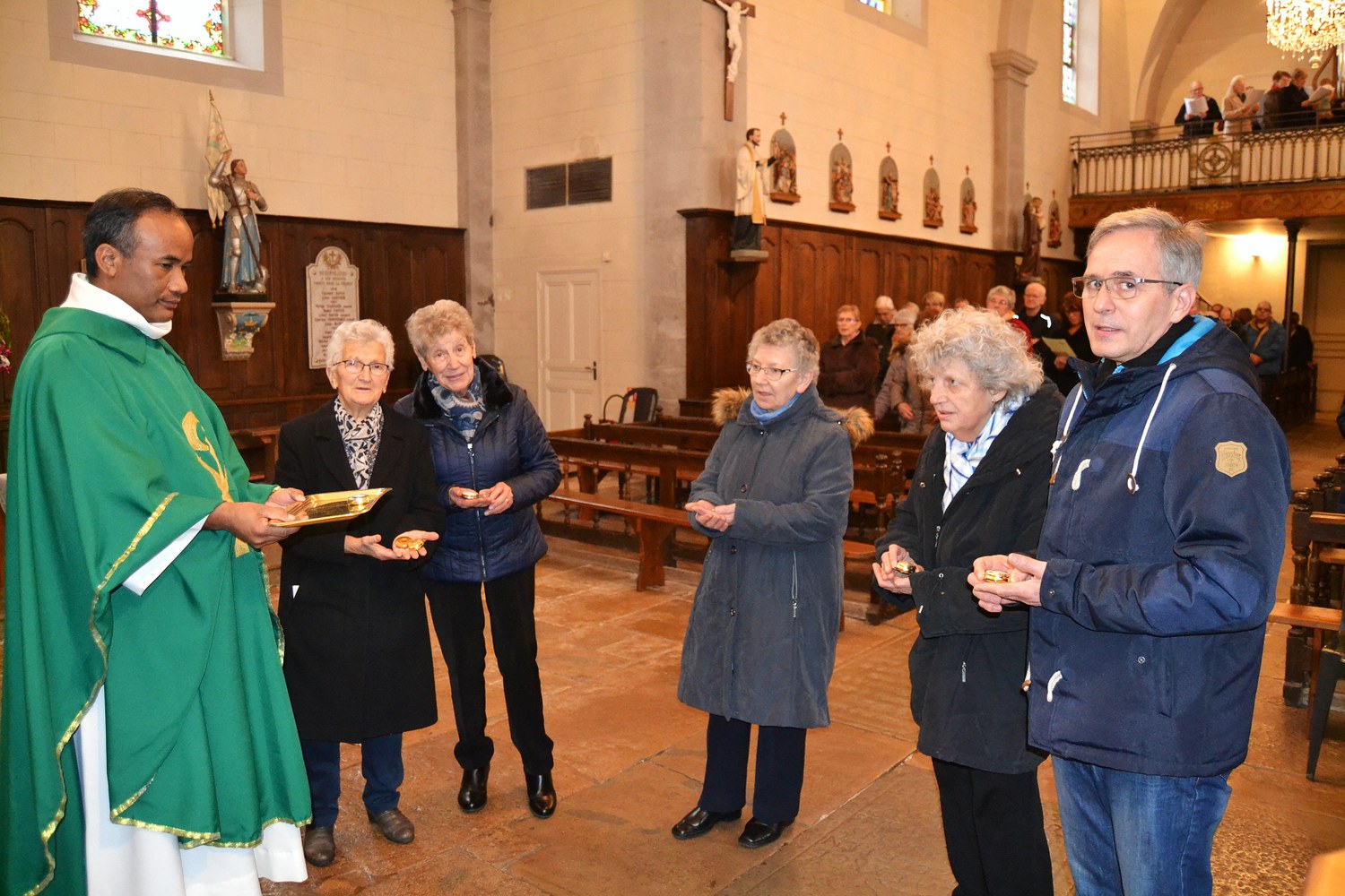 Les custodes ont été apportées sur l’autel. Une prière a été dite prenant en compte tous les souffrants. Remise des custodes aux personnes qui sont missionnées