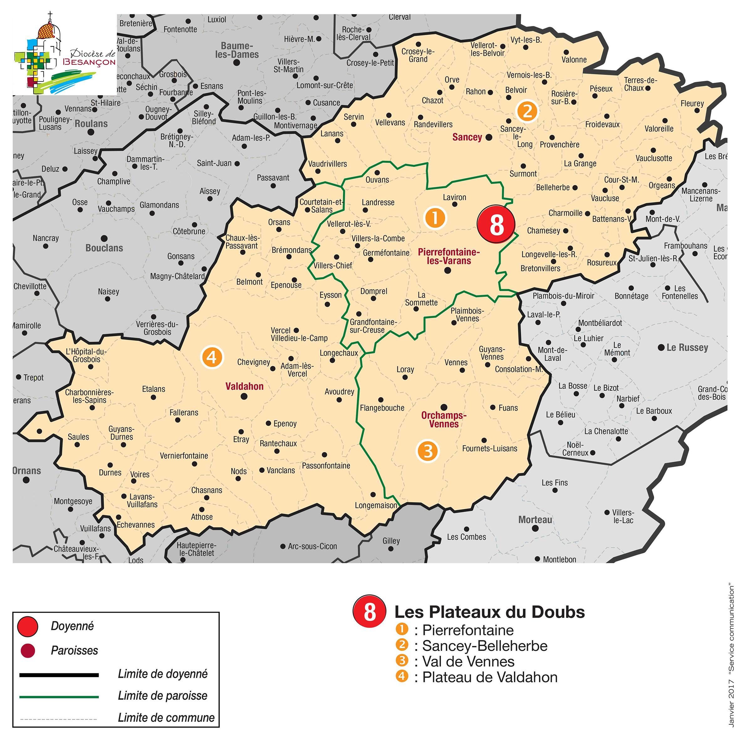 Ma commune, c'est quelle paroisse ? Doyenné Plateaux du Doubs Choisissez votre commune dans la liste déroulante Ma commune : Adam-les-VercelAthoseAvoudreyBattenans-VarinBelleherbeBelmont (25)BelvoirBonnevaux-le-PrieuréBremondans-LeugneyBretonvillersChaméseyCharbonnières-les-SapinsCharmoille (25)ChasnansChaux-les-PassavantChazotChevigney-lès-VercelConsolation-MaisonnettesCour-Saint-MauriceCourtetain-et-SalansCrosey-le-GrandDomprelDroitfontaine (Belleherbe)DurnesEchevannesEpenouseEpenoyEtalansEtrayEyssonFalleransFeuleFlangeboucheFleureyFournets-LuisansFroidevauxFuansGerméfontaineGrandfontaine-sur-CreuseGuyans-DurnesGuyans-VennesL' Hôpital-du-GrosboisLa GrangeLa SommetteLanansLandresseLavans-VuillafansLavironLes Terres-de-ChauxLongechauxLongemaisonLongevelle-lès-RusseyLorayLuisans (Le) (Fournets-Luisans)NeuvierNodsOrchamps-VennesOrgeans-BlanchefontaineOrsansOrveOuvansPassonfontainePeseuxPierrefontaine-les-VaransPlaimbois-VennesProvenchère (25)RahonRandevillersRantechauxRosières-sur-BarbècheRosureuxSanceySaulesServinSolemontSurmontValdahonValonneValoreilleVanclansVaucluseVauclusotteVaudrivillersVellerot-lès-BelvoirVellerot-les-VercelVellevansVennesVercel-Villedieu-le-CampVernierfontaineVernois-lès-BelvoirVillers-ChiefVillers-la-CombeViolette (La)VoiresVyt-les-Belvoir