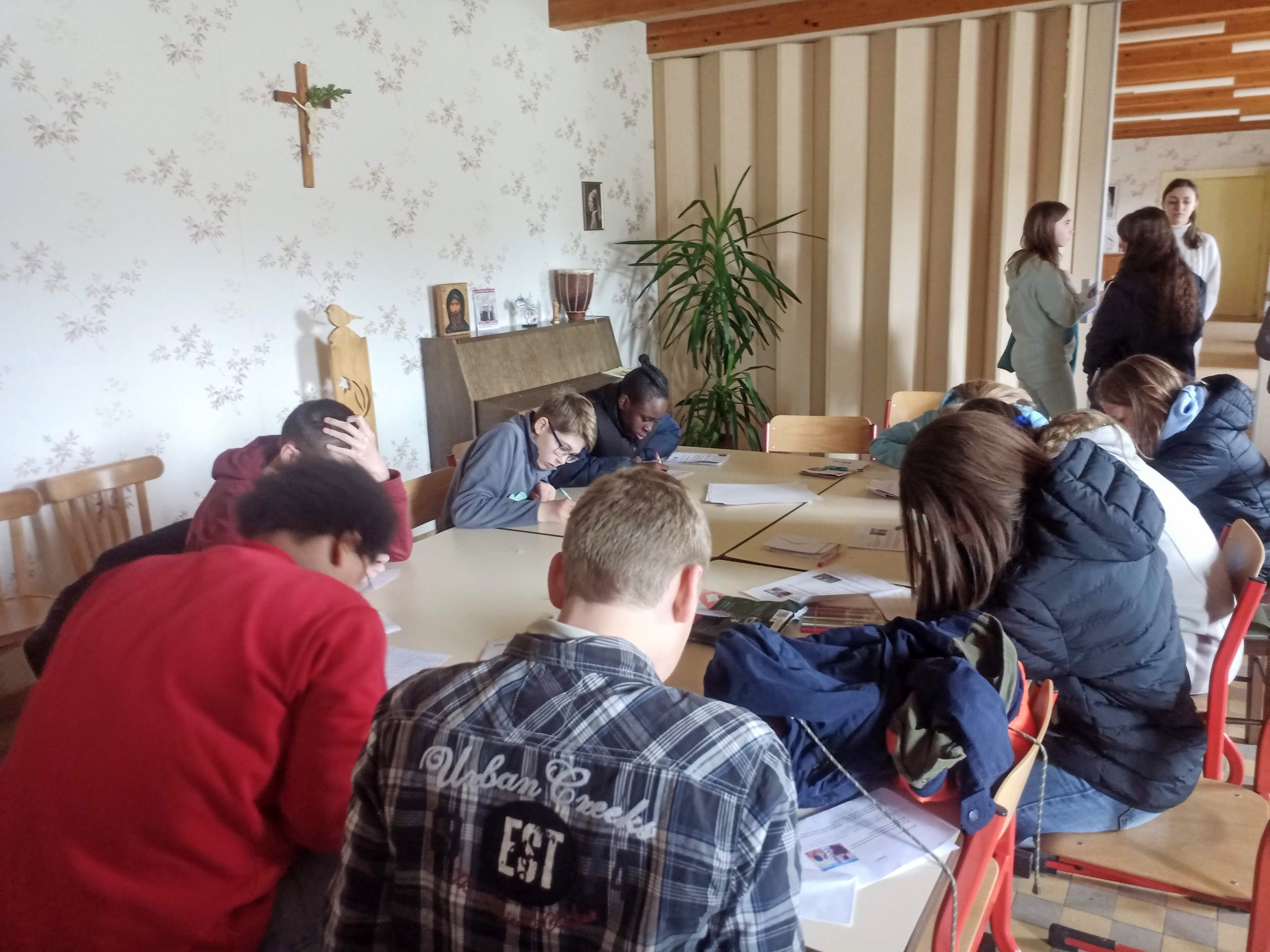 Venus de Haute-Saône, 38 jeunes de 5ème préparant leur profession de foi, ainsi qu’un groupe de cinq adolescents se sont retrouvés au Collège-Couvent des Fontenelles du 26 au 28 avril dernier pour trois jours de retraite. L’objectif ? Clarifier leur foi, avant de la proclamer solennellement devant l’assemblée lors de la célébration en paroisse qui marquera cette étape de leur vie chrétienne, dans quelques semaines.