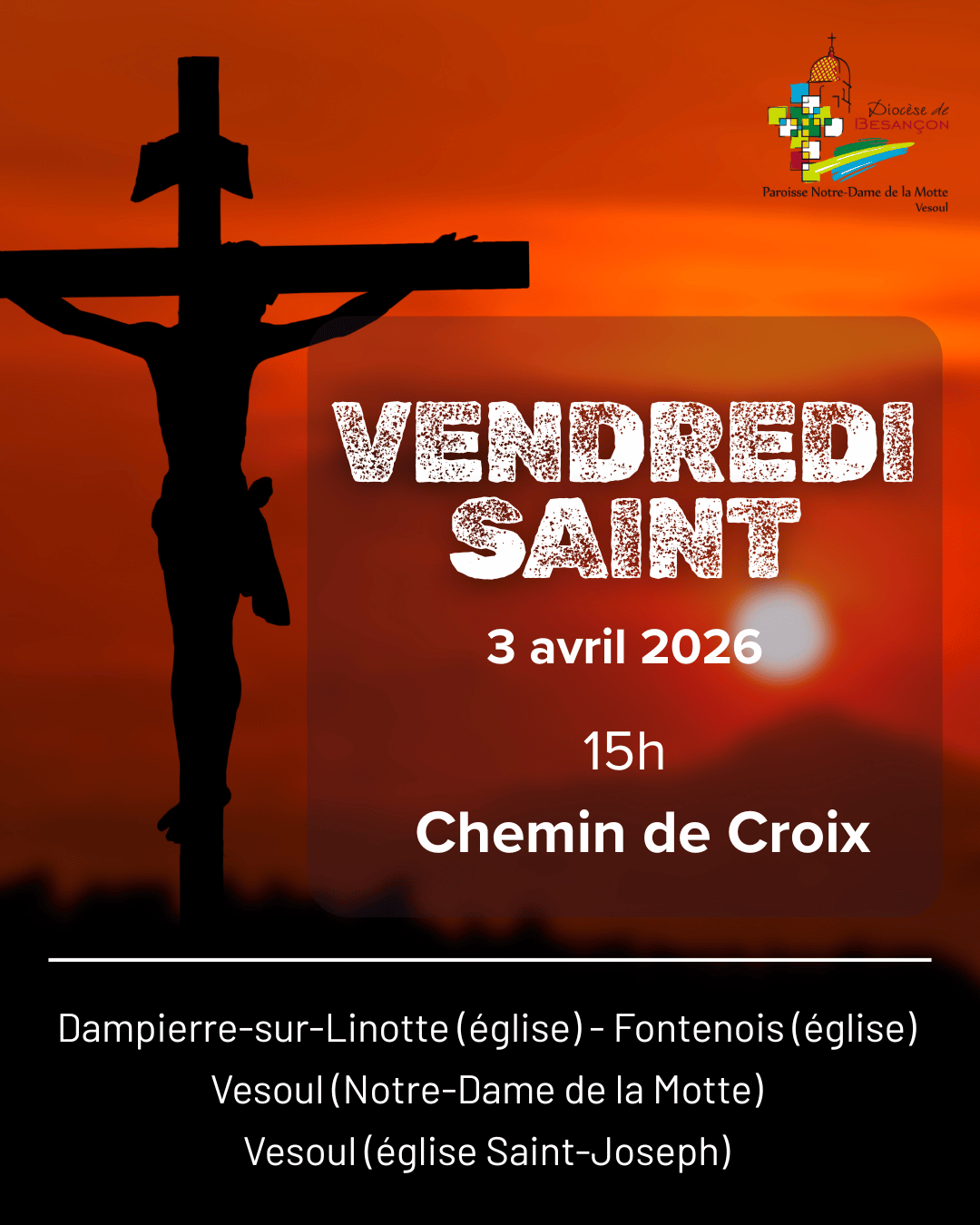 Nous attendons encore quelques informations concernant les lieux et horaires des chemins de croix.