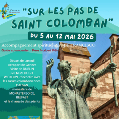 Dans une époque attiédie prête à composer avec le monde et les puissants, saint Colomban de Luxeuil refusa, au risque de sa liberté et de sa vie de s’accommoder avec les modes du temps et la faiblesse des mœurs. Aujourd’hui nous vous proposons de visiter les lieux qui ont vu grandir, se former et partir, cet étonnant personnage, à travers l’Europe en quête d’âmes à sauver et de martyr à risquer. Accompagnateur spirituel : Père Jean-François Francisco.
