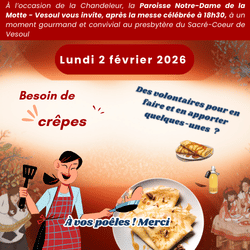 ♦ Messe de la Fête de la Présentation de Jésus au Temple suivi d'un temps de partage des crêpes !