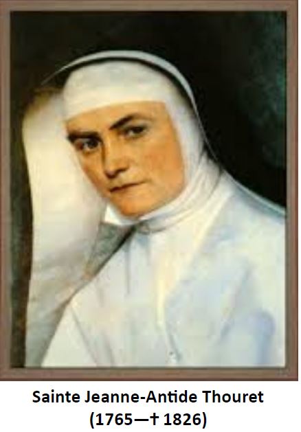 Elle revient en France pour réunir sa congrégation mais voit l’archevêque lui refuser l’entrée du couvent. Elle rentre à Naples et y meurt le 24 août 1826. Un siècle plus tard, la congrégation enfin réunifiée, Jeanne-Antide Thouret est béatifiée le 23 mai 1926 (date retenue pour sa fête) avant d’être canonisée le 14 janvier 1934 par le Pape Pie XI.