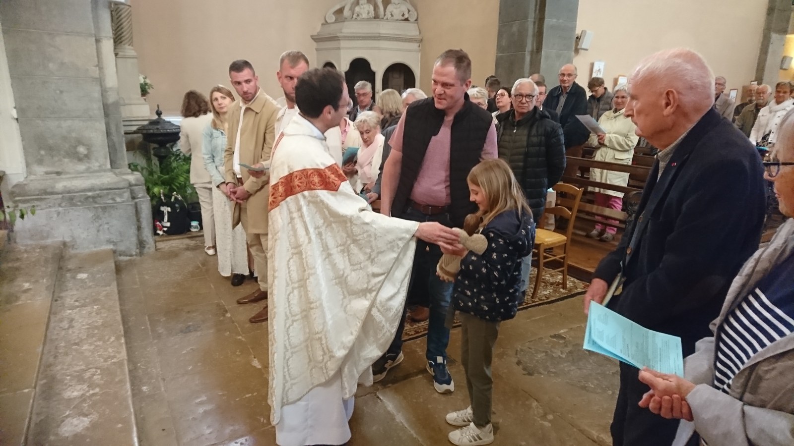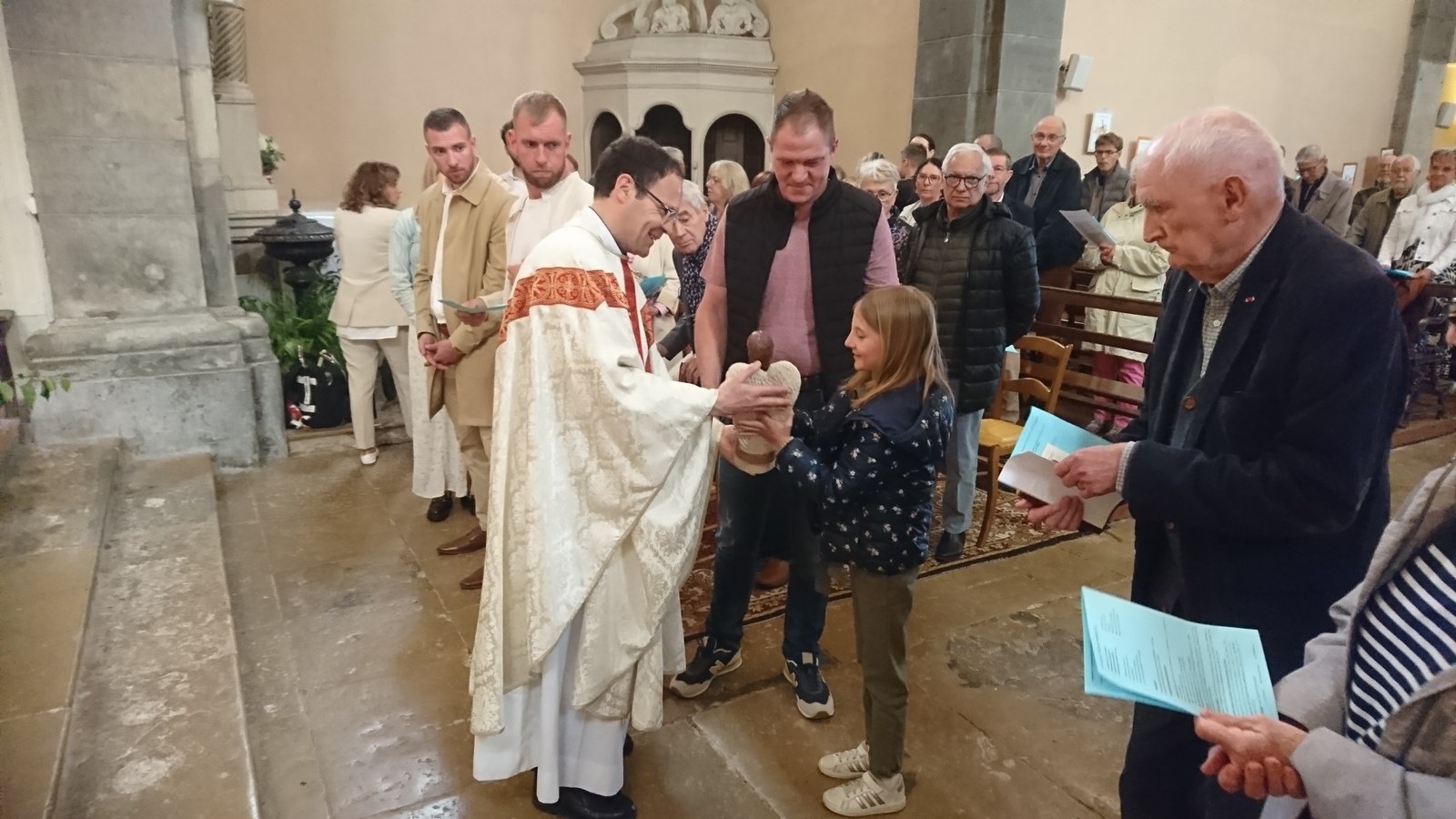 C'est au tour de la famille de Sarah Cattin, domiciliée à Anthon, d'accueillir la statue du saint-Ange durant cette semaine. Celle-ci a été transmise à la fin de la messe présidée par l'abbé Franck Ruffiot en l'église de Rioz ce dimanche 4 mai 2025.