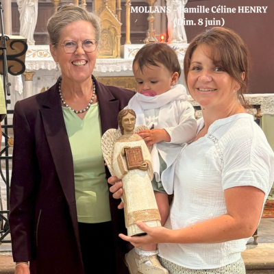 En l'église de Noroy-le-Bourg, ce dimanche 8 juin, en fin de célébration dominicale présidée par l'abbé Jean-Marie Larue, Véronique Lamboley a transmis la statue du saint-Ange à la famille de Céline Henry de Mollans.