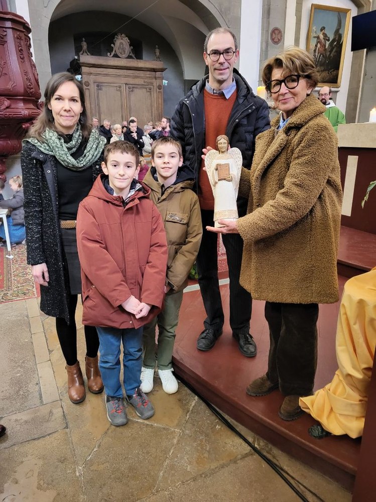 Dimanche 1er février, en l'église Saint-Georges de Vesoul, le Saint-Ange a été remis par Florence et Emmanuel Virot à Françoise Courbariaux.