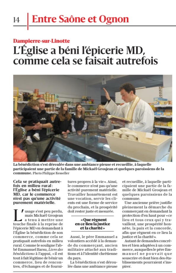 "Cela se pratiquait autrefois en milieu rural : l'Église a béni l'épicerie MD, car le commerce n'est pas qu'une activité purement matérielle".
