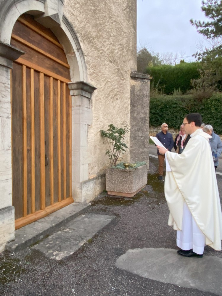 Le 14 novembre dernier, l’abbé Franck Ruffiot, curé de la paroisse Notre-Dame de la Motte, est venu à Coulevon pour bénir la nouvelle porte de l’église du village, Saint-Georges.