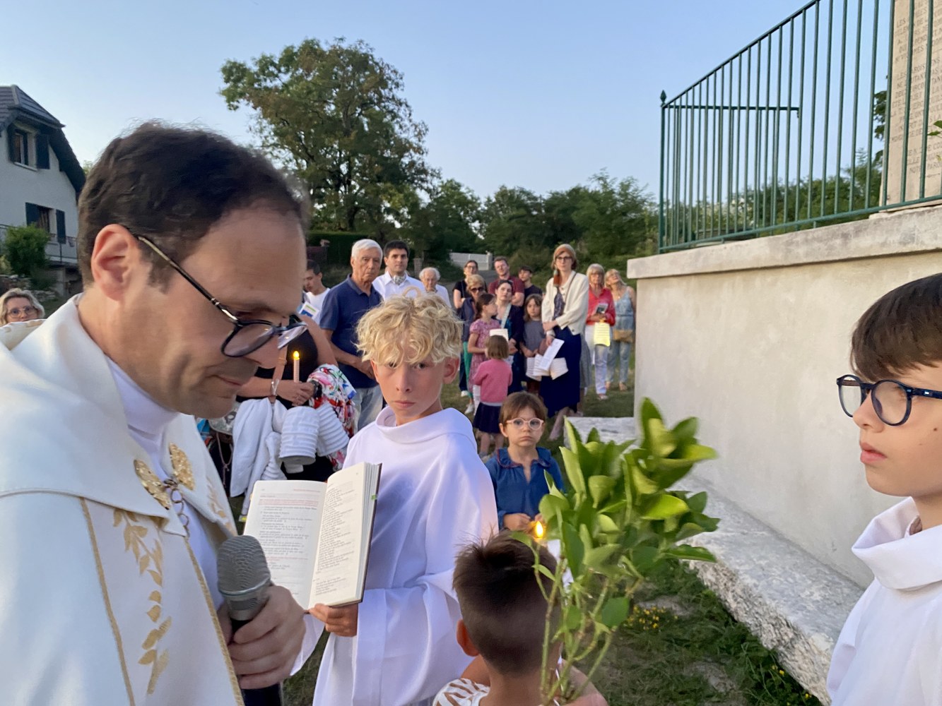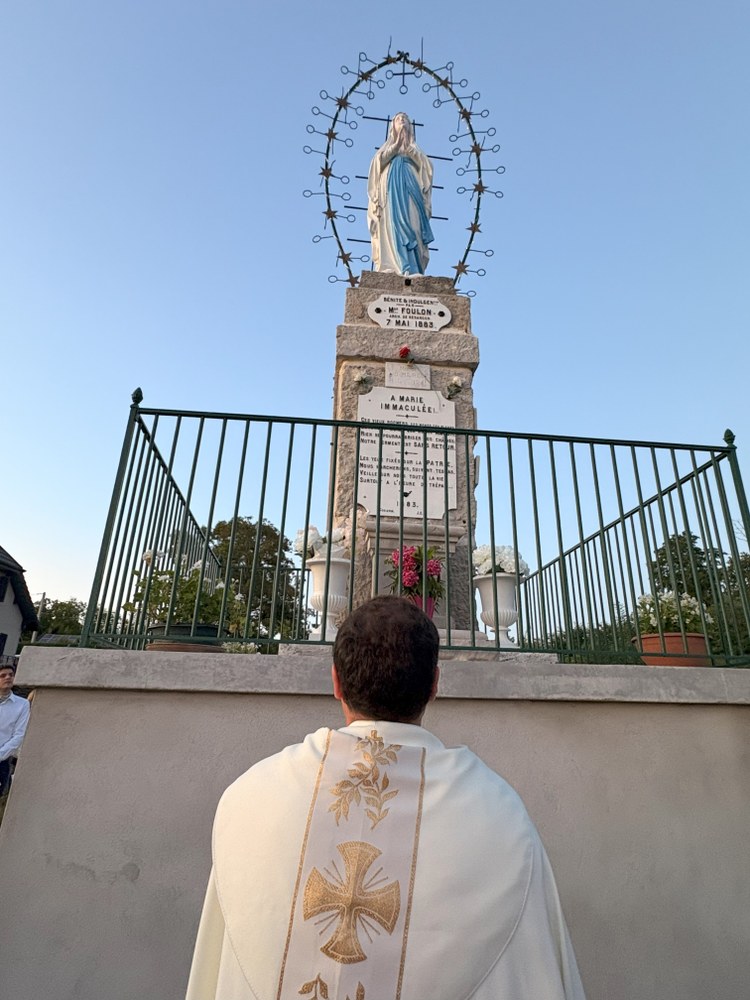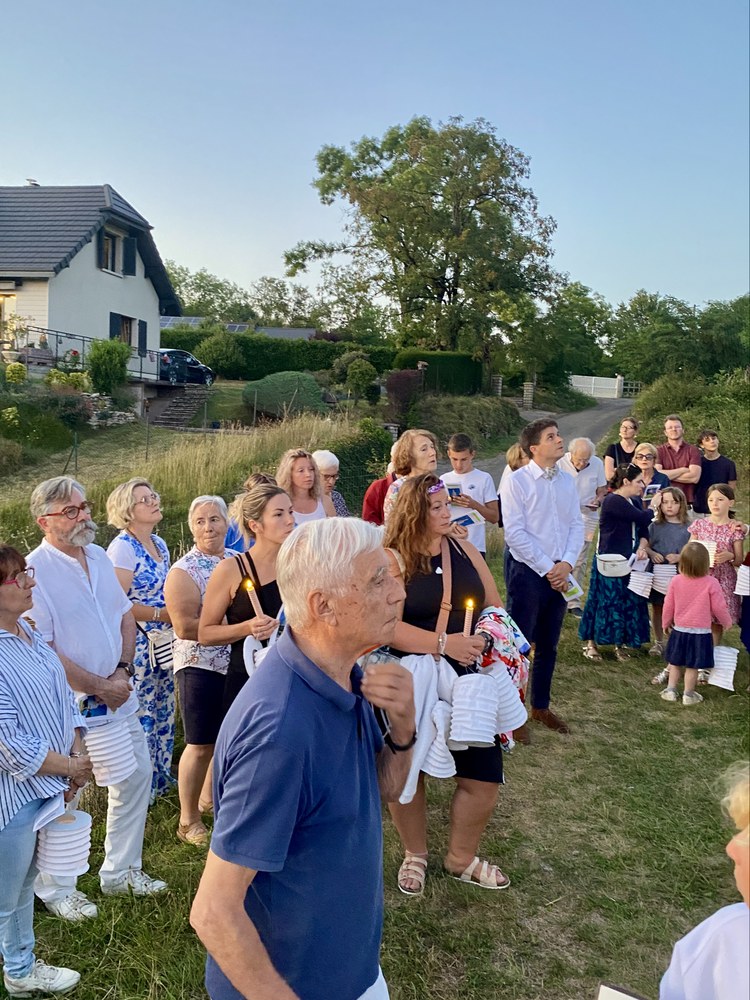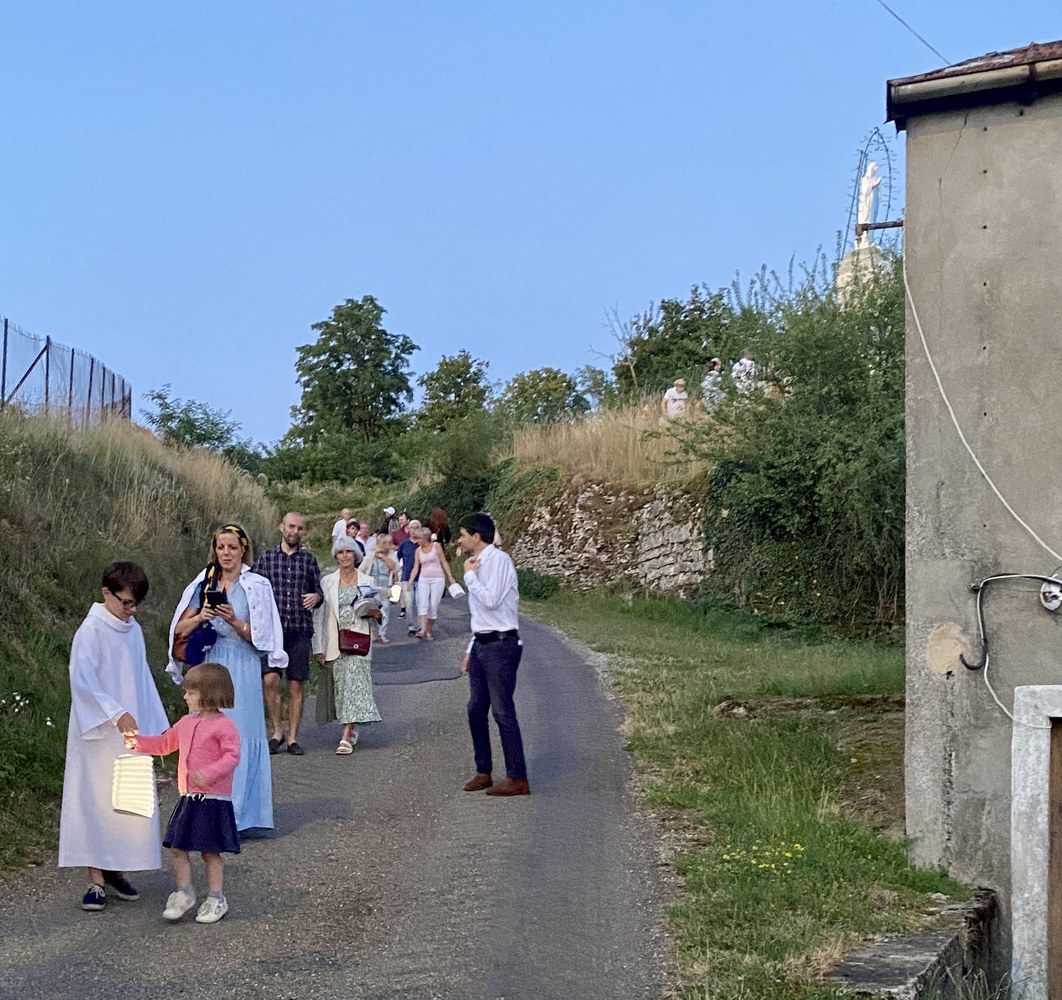 La soirée a commencé par une belle prière mariale en l'église ; Ensuite l'abbé a procédé à la bénédiction du calvaire, puis les fidèles sont montés, en procession, jusqu'à la statue de la Vierge où l'abbé a également procédé à sa bénédiction.
