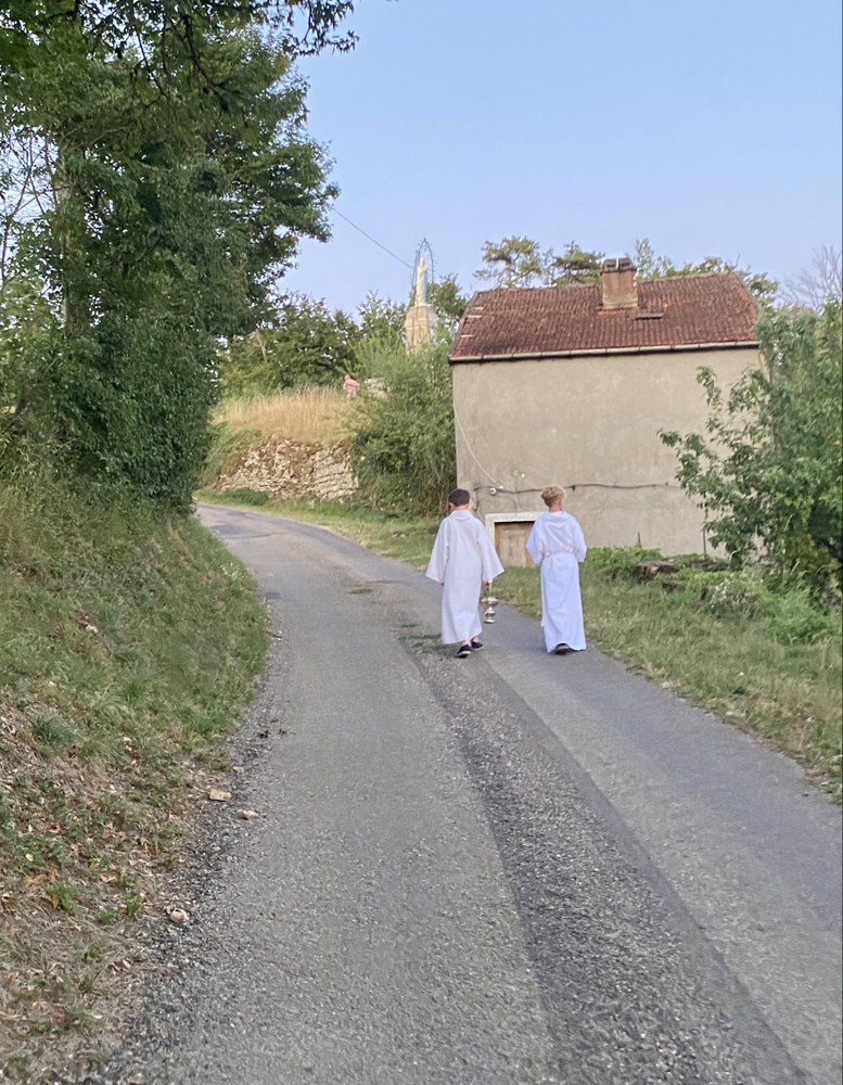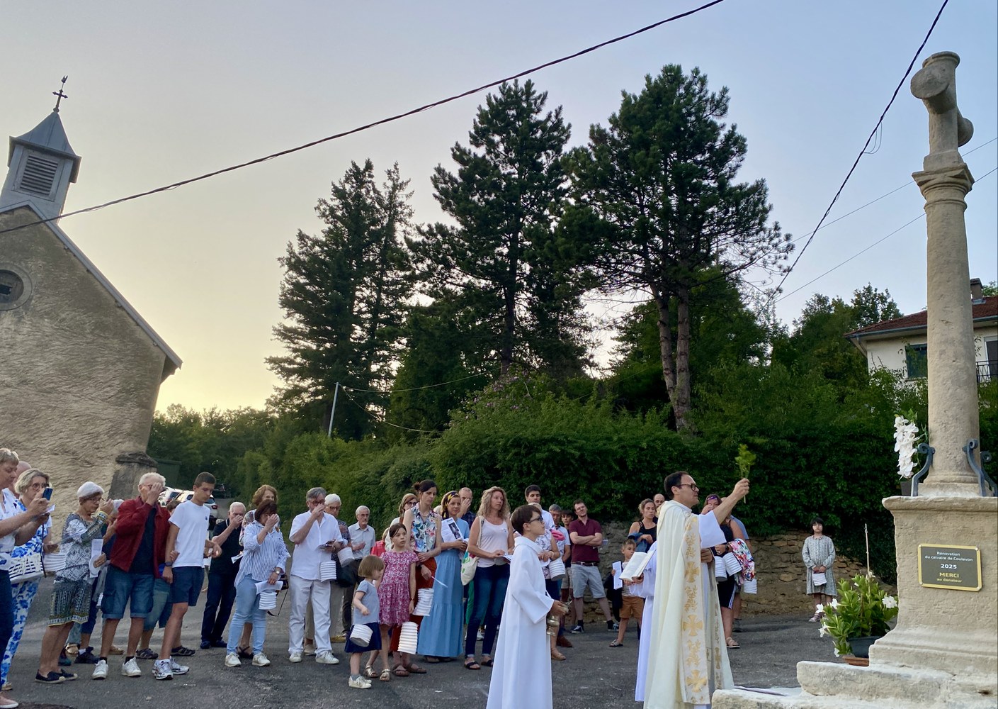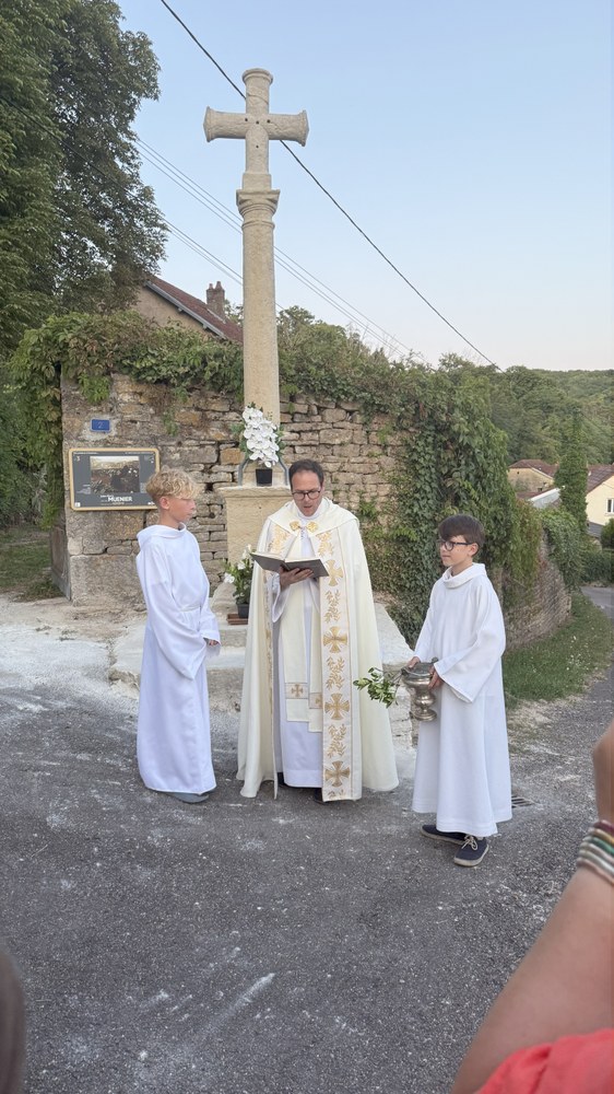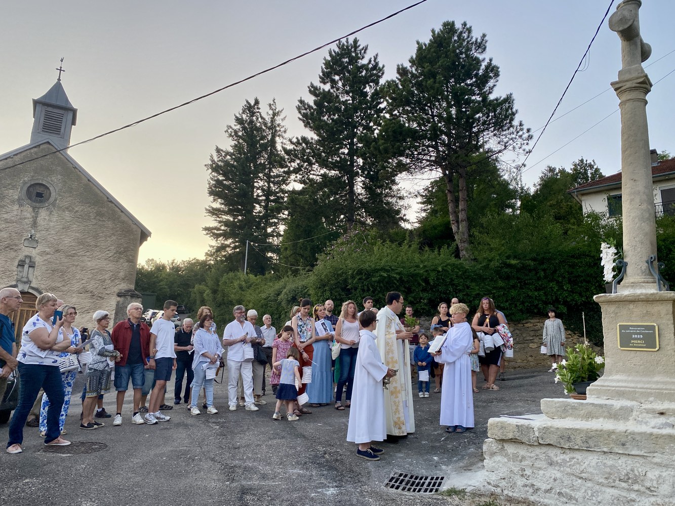 La soirée a commencé par une belle prière mariale en l'église ; Ensuite l'abbé a procédé à la bénédiction du calvaire, puis les fidèles sont montés, en procession, jusqu'à la statue de la Vierge où l'abbé a également procédé à sa bénédiction.